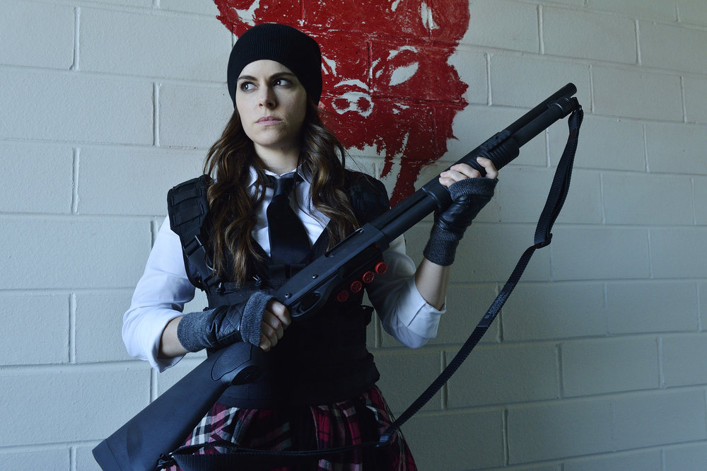 The Tall, Pallid Man (Tom Noonan) visits the institution where Jennifer (Emily Hampshire) used to be held. He’s in charge I suppose, since he’s in charge of the Army of the Twelve Monkeys now. Jennifer has left him a message in the form of a dead body and a phone. Then there’s a little montage of Jennifer waltzing through the hospital releasing women from their rooms while we hear the message to the Tall Man. One of the women, Vanessa (Eve Harlow), gleefully kills the psychiatrist. You can tell from how much she enjoys it that she’s going to be trouble. (By the way, Eve Harlow played Maya Vie on The 100). I love this montage, despite the blood, almost as much as the Mary Tyler Moore Show sequence in an earlier episode. Jennifer is happy, confident and I like the schoolgirl/commando outfit. Very French resistance. The hyenas are coming for the monkeys.