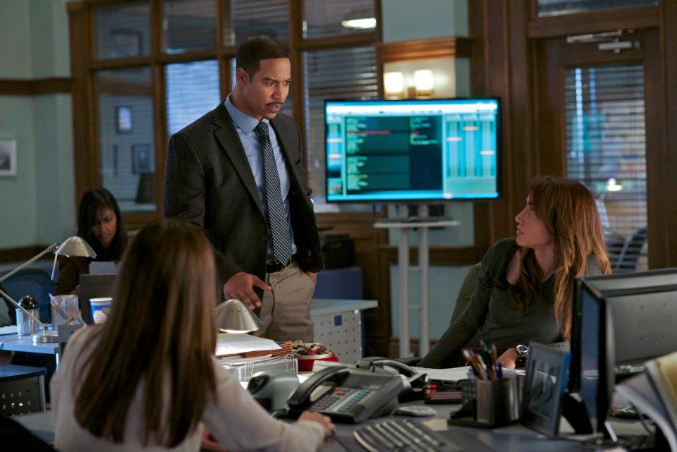 Cat goes to the evidence room and deletes Alex’s name from the dead journalist’s cell phone. She also finds a page of notes that he took from his interview with Alex. Before looking around to see if anyone might be able to observe her unethical behavior (official #8), Cat rips the page out and stuffs it in her jacket…only to look up and see a very angry Tess. Cat tells her she can’t explain. Tess plans to put in a request for a new partner the next morning. How are these two going to survive without one another? Tess needs the support for all the Joe chicanery; Cat needs someone to cover for all her Vincent-related absences. These two WILL reconcile.