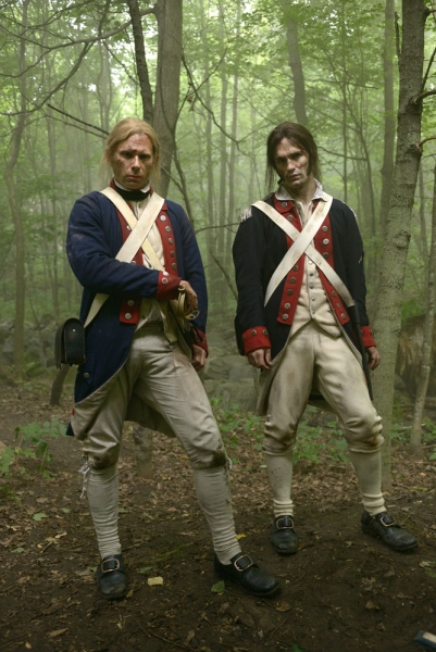 As an American member of the Revolutionary War, Aidan stumbles onto Bishop in his vampiric glory in the woods. It’s your classic “solider meets vampire, fights vampire, gets bitten by vampire, and turns” love story. A nit though: I’m intrigued/bothered by the accents that Pellegrino and Witwer affect during these scenes. Not having lived during the American Revolution, I can’t speak to what the prevailing accent of the day was, but it’s odd to the ear and distracting. Both those guys are such strong actors, however, that I must give them the benefit of the doubt.