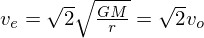 Where $latex v_{o}$ is the circular orbit speed that we calculated from a different (but equivalent, trust me) formula. So, for a rocket on the ISS travelling in orbit at 17,488 mph:
