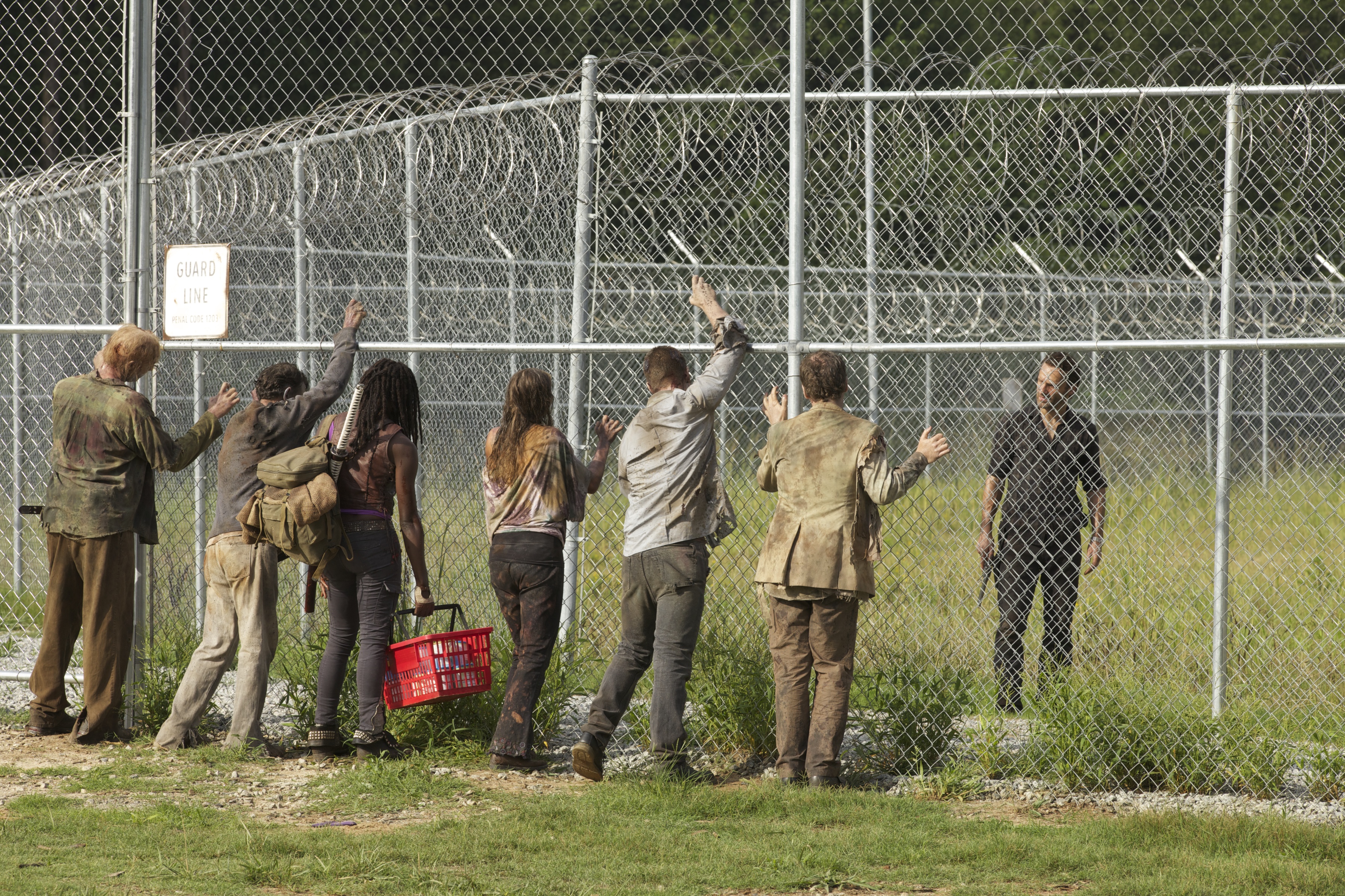 In the cell block, Team Zombie discusses who will go on the away team to scout Woodbury. Pretty much everyone volunteers. Rick realizes that it’s up to him to pick the team.