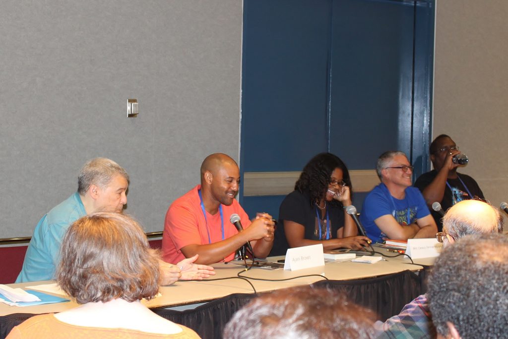 When asked if they thought that they had experienced a push back against their push for Afrofuturism, the panelists had interesting answers. Ajani Brown said that he hadn’t experienced any. Cerece, a lovely and vivacious woman, said that she had been rejected twenty times before she self-published. She said, “My mom said everything worth doing is hard.” She added, “If you look like me, it’s probably harder.”