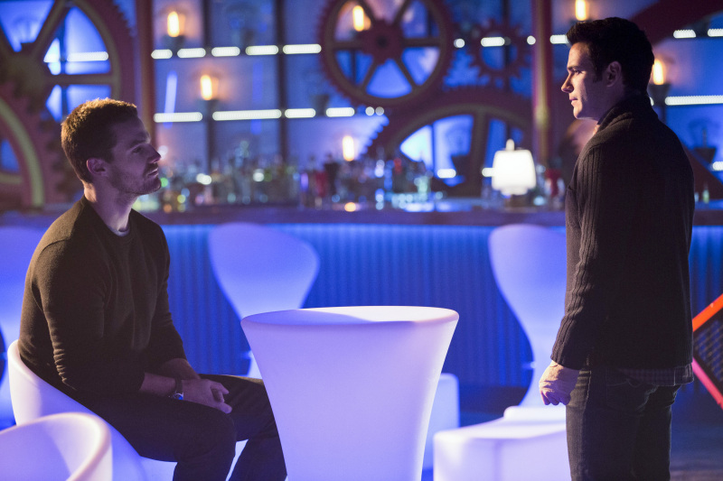 Arrow — “The Huntress Returns” — Image AR117a_0003b — Pictured (L-R): Stephen Amell as Oliver Queen and Colin Donnell as Tommy Merlyn — Photo: Jack Rowand/The CW — © 2013 The CW Network. All Rights Reserved