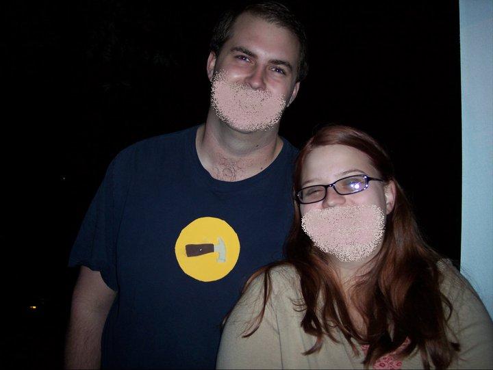 In the fall of 2007 I went for something completely different in an attempt to make up for the lameness of the previous year.  I went as a bra pirate.  If you’ve never read Questionable Content, you need to…that was my inspiration.  I wore a t-shirt and a long-sleeved undershirt and threw my “eyepatch” over some heavier makeup than I usually wore (it was an attempt to look a bit more like a webcomic character).  Unfortunately, I didn’t end up getting to do anything outside of the house.  The coolest part of the experience that Halloween was helping a friend of mine dress up.  He wanted to go as a demon and, as such, the task ended up falling to me to paint every exposed surface of skin.  I toned him red and added freaky blue veins…it was a thrill as the last time I had done a full body makeup had been a year prior.