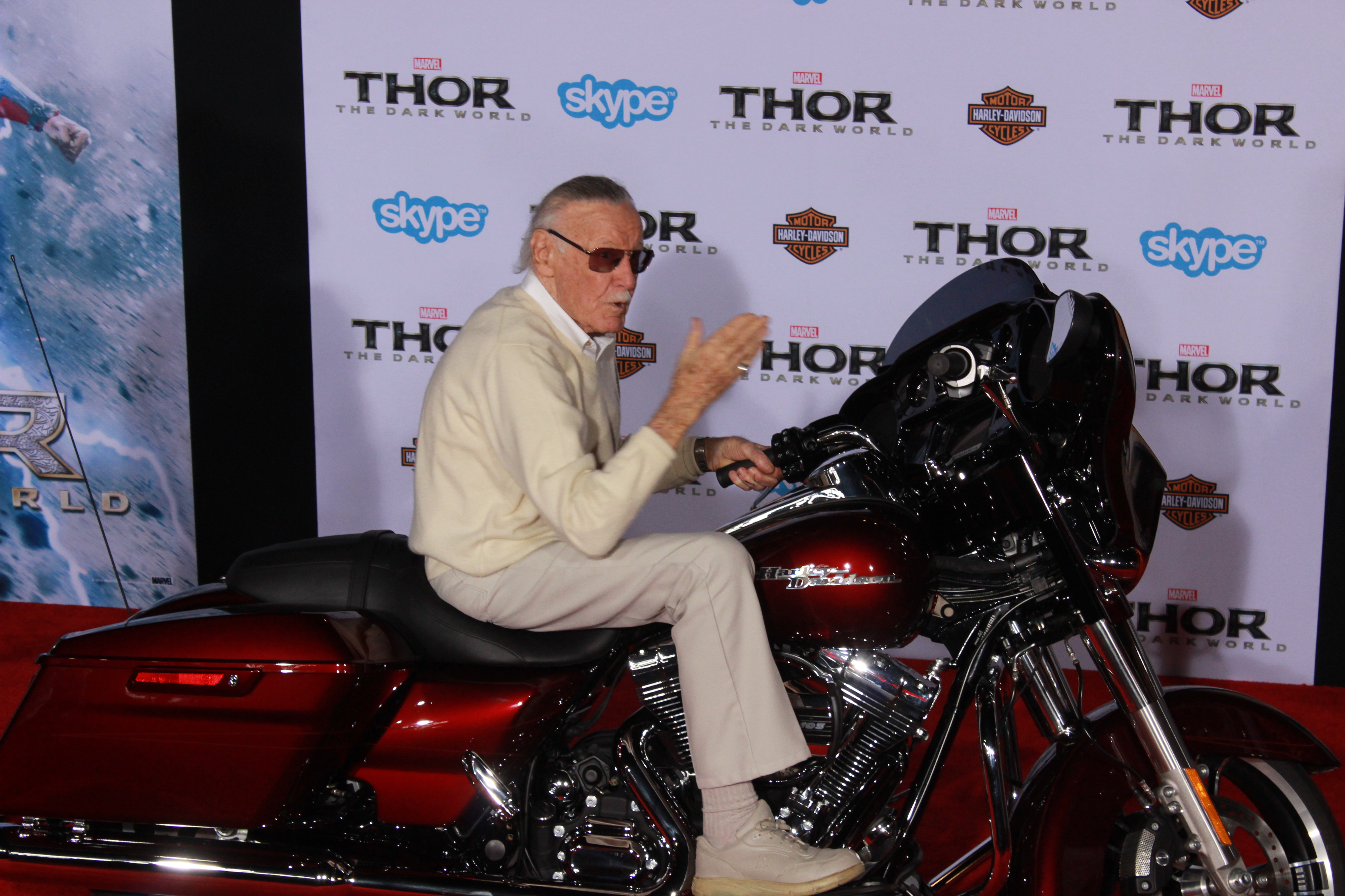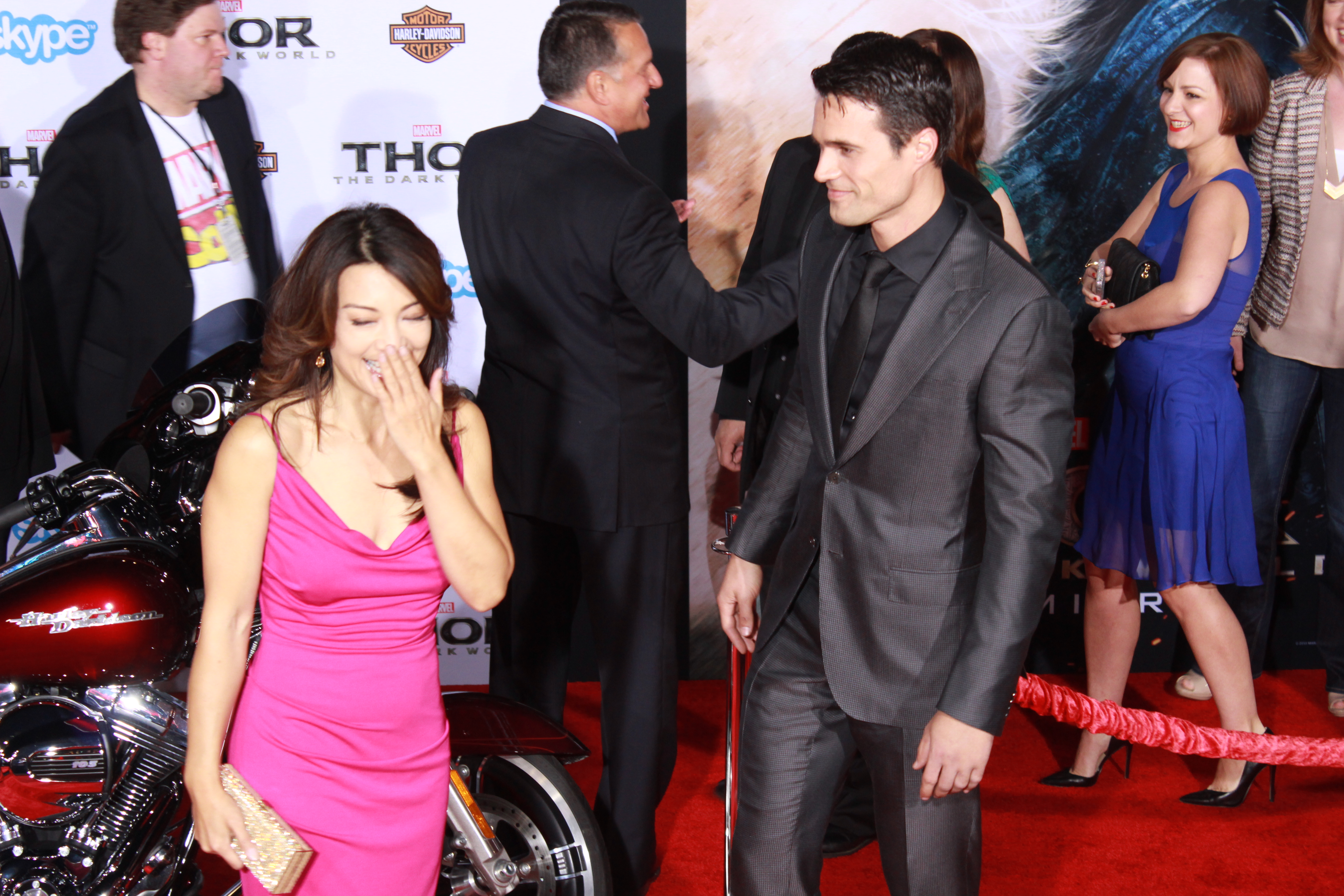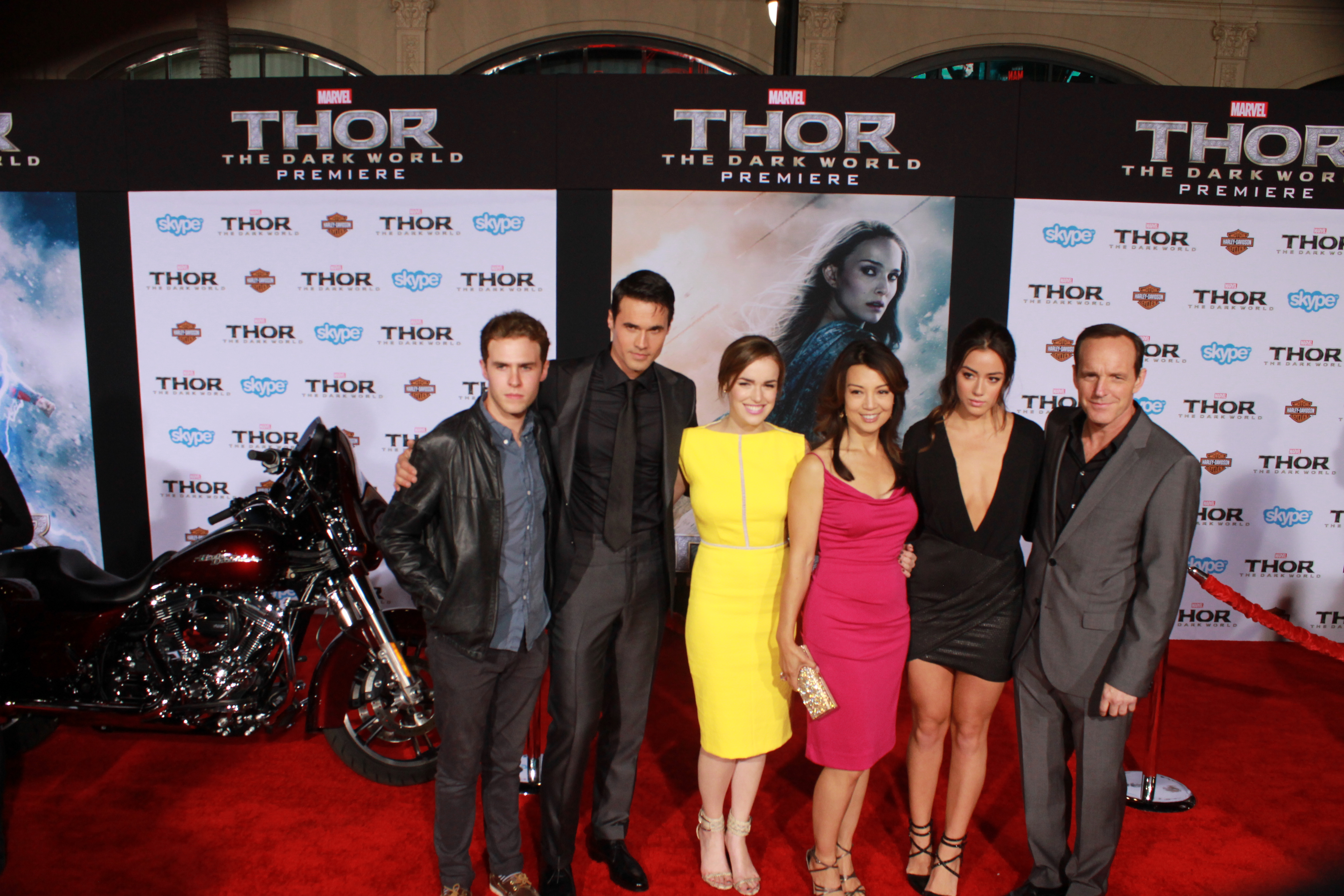 At the famed El Capitan Theatre, “Thor”, (aka Chris Hemsworth), brought the THUNDER when he came out for the World Premiere of Thor: The Dark World. And there was an awesome Harley Davidson bike throughout the event.