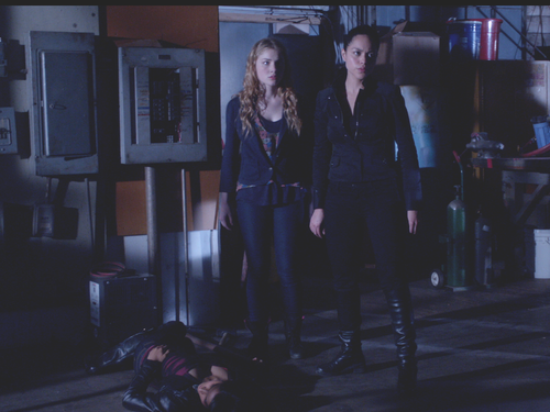 Chloe eventually figures out what the hot twins are all about, how they think humans are puny and deserve what they’ve got coming, but Chloe’s not having any. Which disappoints the hot twins terribly. Thus leading to the 3 minute fight scene in the blue HMI light at night.