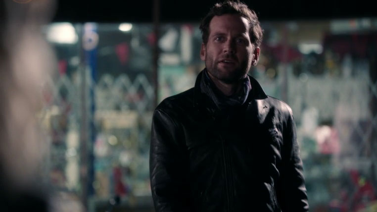 Outside, Henry shows up with pumpkin pie (doesn’t this kid have a curfew?). Emma says she’s glad she told him about his father (which she didn’t, really), and then a dark, handsome stranger shows up on a motorcycle, wooden box strapped to the back. Who is he, and how did he get to Storybrooke?