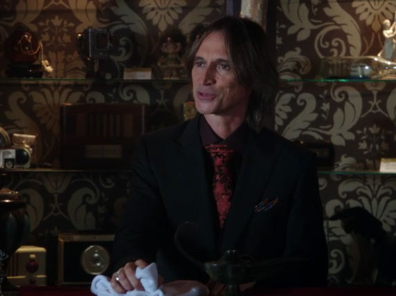 Oho! So Gold knows much more than he’s telling. How did he know Tillman’s name just off the top of his head? More evidence that he knows more than he’s telling. (And I take special note of the lamp on the counter in front of him. It looks very much like a certain lamp that houses a certain genie…)