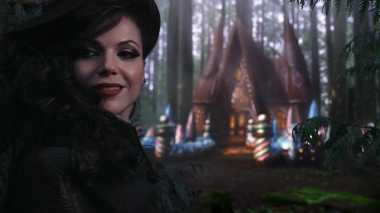 In the woods over in FTL, the Evil Queen takes kids to the home of the Blind Witch. Hansel is the master of understatement this week: “That doesn’t sound good.” The Blind Witch has something the Queen needs to defeat an enemy (obviously Snow White). But the house house is protected by magic, so Grimhilde can’t enter. However, the spell doesn’t work on children, so they make a deal with the Queen in exchange for finding their father. Grimhilde has a final warning: “Don’t eat anything.”